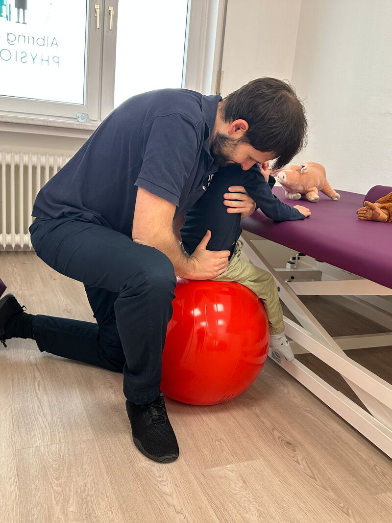 Dmitrij Rohovoy mit Kind auf Gymnastikball